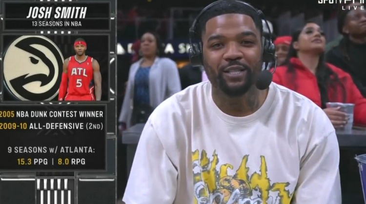 前老鷹球員約什-史密斯也來到現(xiàn)場,效力老鷹9個賽季中,約什-史密斯場均15.3分8板3.2助,曾斬獲過1次NBA全明星扣籃大賽冠軍,并入選最佳新秀二陣和最佳防守二陣(09-10賽季)。