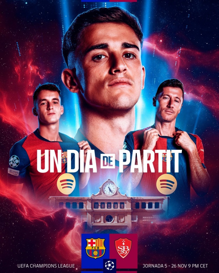 巴薩官方社媒公布了為此役制作的海報(bào),加維占據(jù)C位,萊萬、卡薩多出鏡。