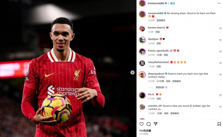 他也在賽后通過(guò)社媒曬出自己的比賽照,并表示:“不要放慢腳步,很高興能夠回到球場(chǎng)