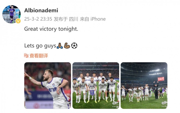 2025-03-03 00:01:07進(jìn)球助津門虎取勝!阿代米更新社媒:勝利之夜,繼續(xù)加油小伙子們