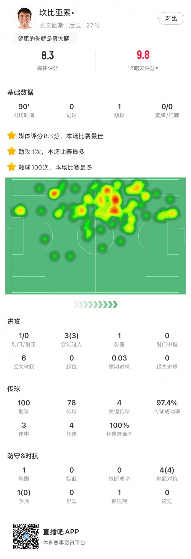 2025-03-04 06:00:04坎比亞索本場(chǎng)數(shù)據(jù):1次助攻,4次關(guān)鍵傳球,3次成功過(guò)人