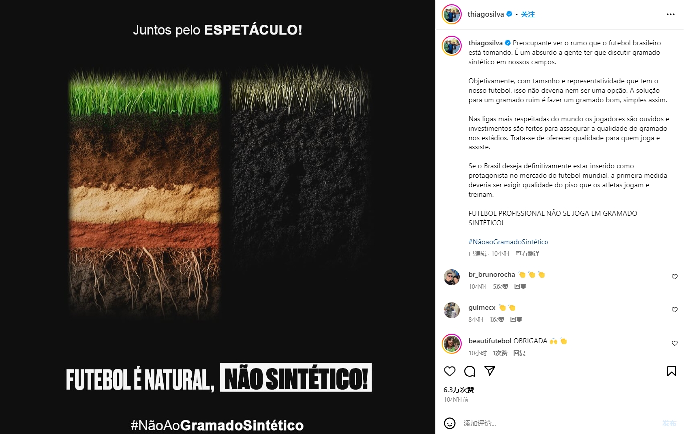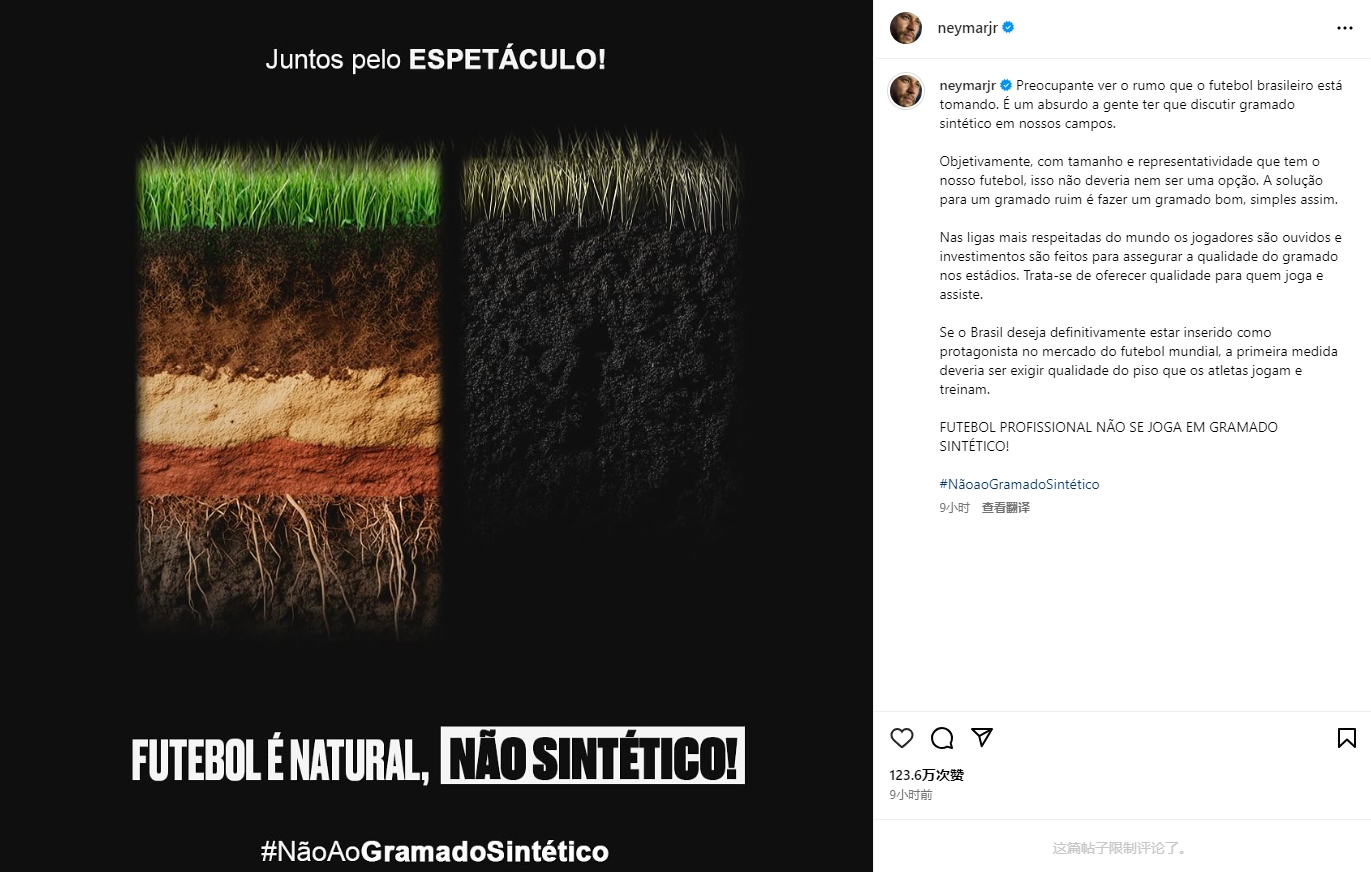 02月19日訊 內(nèi)馬爾、庫蒂尼奧、蒂亞戈-席爾瓦等人社媒發(fā)布相同的長文,對巴西足球球場使用人工草皮進行批評。