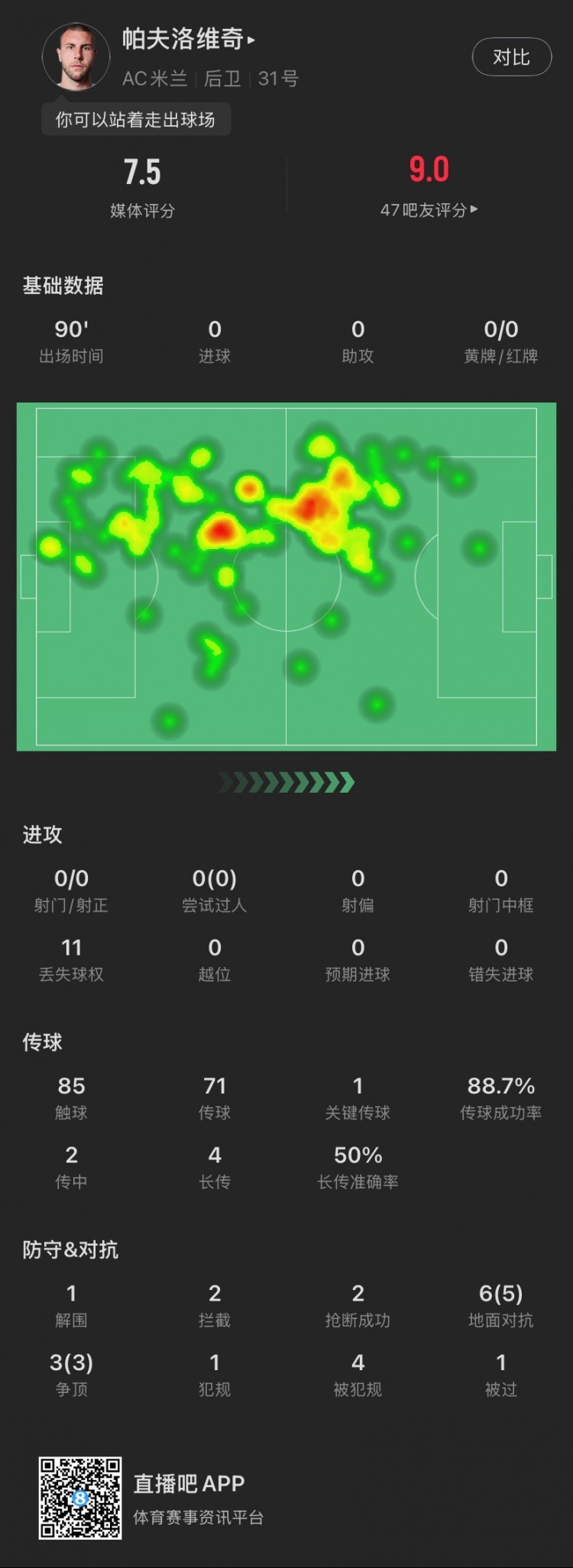 2025-02-19 19:50:04盡力局!帕夫洛維奇本場(chǎng):9次對(duì)抗成功8次,貢獻(xiàn)1解圍2攔截2搶斷