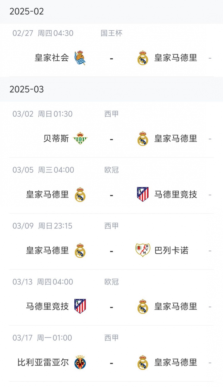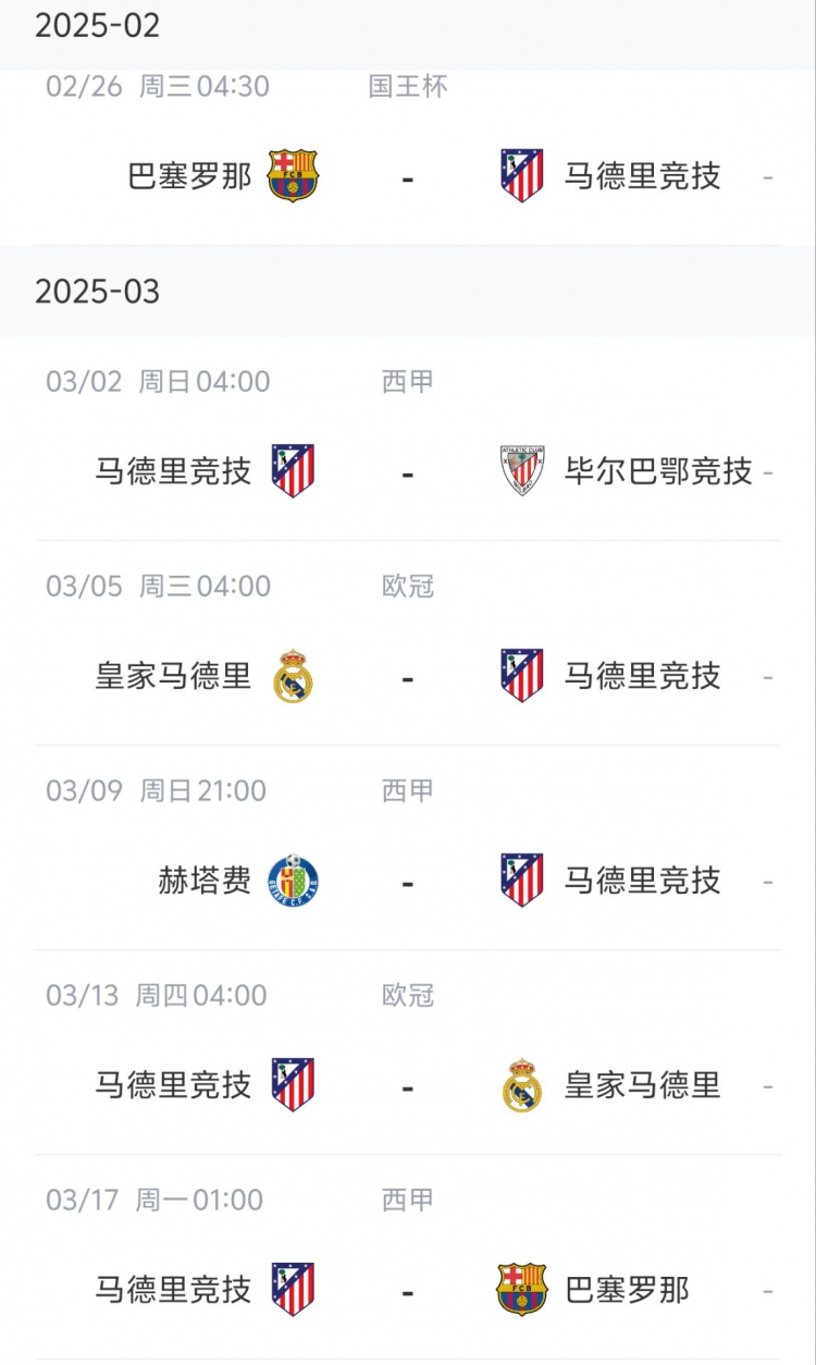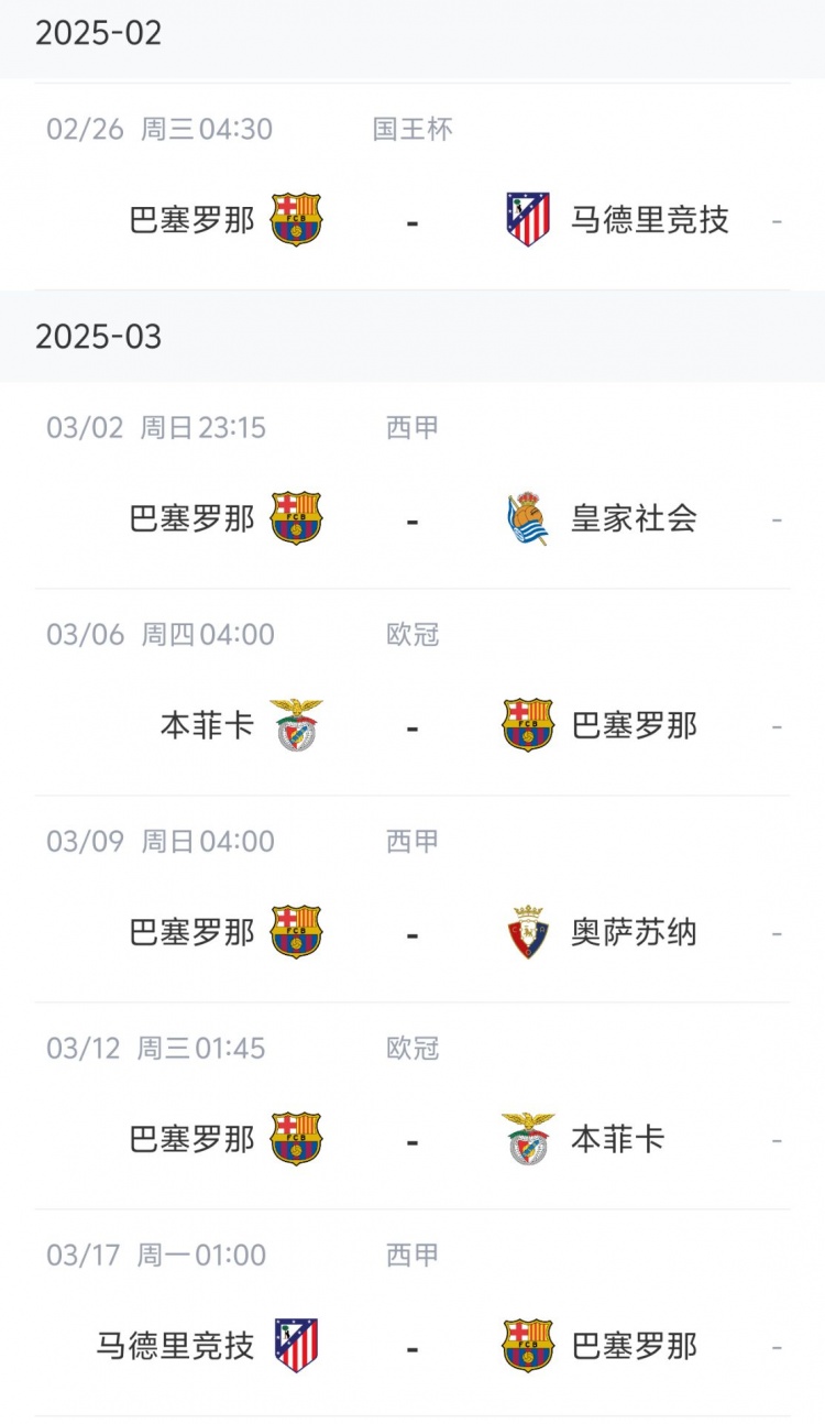 2025-02-24 18:00:32每體:未來三周賽程對(duì)巴薩最有利&4個(gè)主場(chǎng) 皇馬馬競(jìng)賽程緊張